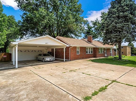 4 CAR detached GARAGE, 1 attached garage AND 2 Covered Car Port Spaces! You do not want to miss this rare South county gem. 1619 square ft solid brick ranch with huge private lot!So much potential here! Newer architectural shingled roof. Gorgeous glass block bathroom window, huge front picture window and stunning gas fireplace. Large rooms with well preserved original hardwoods under thick carpet. Large closets in almost every room. Spacious kitchen with nice appliances. Dining room/family room off of the kitchen leads to your incredible back yard. Level and landscaped with access to your attached 1 car garage and your huge 4 car tandem garage with workshop space. There is also a large shed on the lot. The lower level is finished with a family room, bar and 3 extra rooms to use as you'd like or open up for one huge living space. There is a 3/4 bath as well. Walk out to access your beautiful patio and huge back yard. A little paint would go a long way in this sprawling ranch!