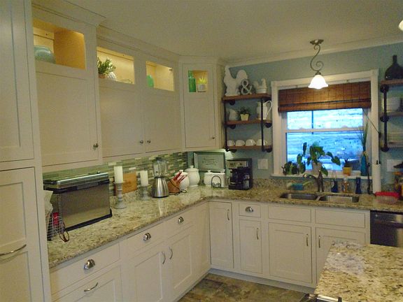 Amazing opportunity to own this completely renovated 2 bedroom, 2 bath ranch style home. This home has an open concept, lots of natural light, with custom details throughout. Beautiful kitchen with custom cabinets, large laundry room, spacious owner's suite with custom-tiled shower and fireplace. All appliances, furnace, electrical, plumbing, windows, doors, siding, and insulation has been replaced. Full unfinished basement allows possibilities for additional bedrooms and/or family room, 2 car attached garage and storage shed. The backyard patio and landscaping will be the perfect place to entertain friends and family. This property has a paved drive, sits on 3 lots, has a fenced in back yard, is move-in ready, and is in a great location on Circle Drive within walking distance from town.