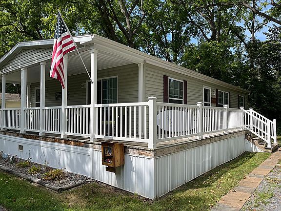 Accepting back up offers. Location is waterside. Zillow map not accurate. Beautiful home in seasonal park on south east side of Canandaigua Lake. 800 North Vine Valley Road #90 Middlesex. There’s still time to enjoy 600’ of waterfront shared by this family friendly community. Boat launch areas, swimming, hoist slips for rent. Home is only 6 years old and it’s in terrific condition. This 1350 square foot home features an open floor plan with master suite opening to porch that has a waterview (think morning coffee) and two bedrooms for kids or guests on the opposite side with a separate bath. Price includes Amish-built shed and most furnishings — just move right in. Furnace and stove are propane fueled. Water is on in the park from April-October. Lot rent (about $8000) includes water, sewer and garbage pick up and is paid in annual installments. New owners must be approved by Park management.