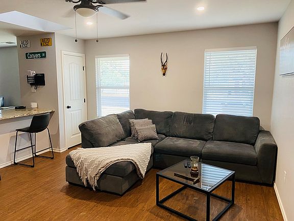 Private backyardHardwood floorsCarpeted bedroomsModern kitchen