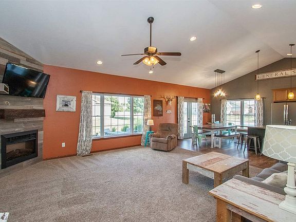 Stunning 5 bedroom 3 bathroom ranch home on an oversized corner lot in beautiful Kalona. Move right into this open concept home featuring a large kitchen with custom cabinetry, tile backsplash, giant island, ceramic tile flooring and stainless steel appliances. French doors just off the dinning room take you out to your custom stamped concrete patio and flat backyard. Beautiful oversized master suite with walk in closet, soaking tub and stand up shower!