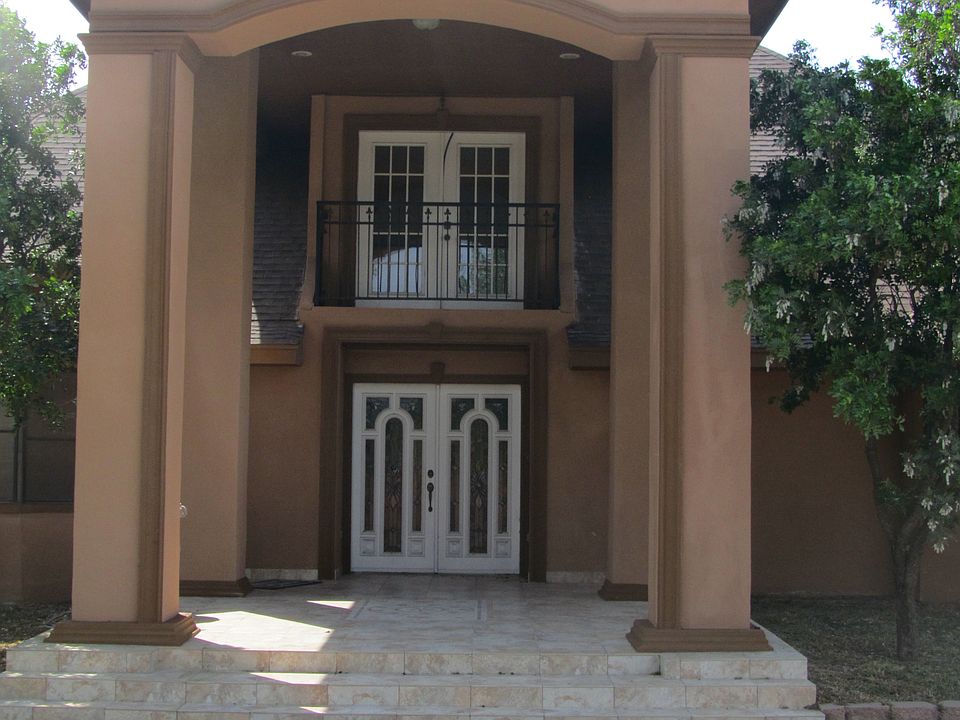 800 W. Canton Rd. in Edinburg, 2 Story stucco with 3BR & 2.5BA on 1.4 acres on Canton Rd., Back yard for entertainment: Pergola, tables, fountains, pond, detached office and work shop, 6-8 vehicle covered parking area
