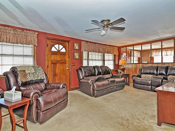 Picturesque waterfront Cape offers a warm feeling of spaciousness and quality. Fireplaced living room is open to the dining area with slider to the large screened in porch perfect for entertaining in the warm weather! Kitchen offers beautiful cabinetry, wall oven and wine fridge. 2nd floor boasts 3 bedrooms as well as a cedar closet. Partially finished basement provides an additional living area great for game day or sleepovers as well as a laundry area. Central air, cabserle hookups in all bedrooms, living room & family room, hardwood flooring underneath carpets. You'll spend all Summer in the private, tranquil backyard with outdoor Tiki Bar & direct access to fishing, hunting & conservation lands. PLUS no direct neighbors provides you with your own getaway at home! Business zoned for future opportunity. Conveniently located to major highways, restaurants, & shopping. HOME WARRANTY INCLUDED.