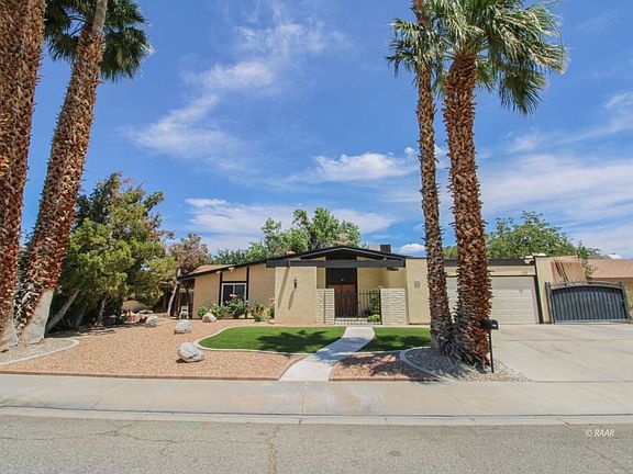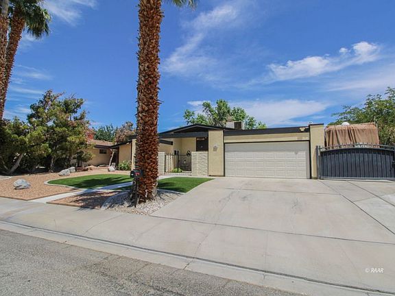 This well maintained home has almost 2000 sq ft. The curb appear will stop you in your tracks..you can't miss the PALMS! Enter through a lovely & inviting courtyard a water feature & wrought iron gates. The large .22 acres is beautifully landscaped, front & back. DUAL cooling EVAP & Dual Pack AC/Heater unit.There are plenty of upgrades; Interior painted Sept 2019 & Popcorn ceiling all scraped. New; hot water heater & garage roof replaced Mar 2020, Low E windows & sliders all replaced 2019. Newer; Grand double door entry. Both bathrooms updated w/Carrara Marble countertops. Enjoy the 2 living spaces w/separate dining area w/large windows, skylight which gives the indoor/outdoor feel. Spacious master suite w/wood laminate flooring, slider door to the back yard, walk in closet w/updated bath..Carrara Marble Counter tops & beautifully subway tiled shower. Kitchen; corian solid surface counters w/integrated sink, breakfast bar & SS appliances. Relax in the back yard under the large centered covered back patio w/tiled flooring, lush green lawn & greenery. Storage shed. Drive that giant RV through the double wrought iron gates shaded w/a gigantic approx 15x31 RV Cover! A MUST SEE!