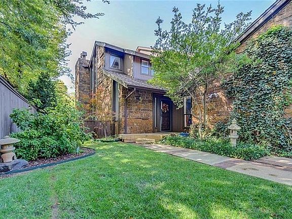 Walk to OU Football, Basketball games, and the University from this Architectural Delight. Downstairs master bedroom has carpet the rest on the downstairs is done in beautiful brick floors. Nice greenbelt area behind with lots of trees and neighborhood pool. Nice decks for peaceful patio time. Large kitchen with island and bar area, wine frig, built in wine rack and desk area. Large formal dining with built in china cabinets. Walk behind wet bar. Massive ceiling heights in LR with stone posts. Fireplace with gas logs. Two master walk-in closets. Separate tub and shower in master bath, along with double vanities. Large open sitting area upstairs with lots of bookcases. The list goes on. Come see this one. Zoned Heat and Air and 2 Hot water heaters. Kitchen cabinets are high end Wood-mode. If buyer wants the color of the cabinets changed, seller will paint to suit.