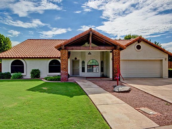 This Beautiful home is located at the end of a quiet cul-de-sac in the heart of Chandler with no HOA! Just a short drive to Downtown Chandler to great restaurants and a short two mile drive to the 202 freeway. Plantation shutters throughout the home as well as a Murphy wall bed in one bedroom. Beautiful brick fire place and wood beam ceilings in living room overlooked by the open kitchen. Skylights and high ceilings in bathrooms bring in plenty of light. The Large covered patio compliments the large wrap around lush backyard with plenty of room for entertaining and relaxing. This custom built home is a must see!