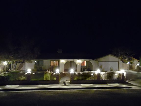 This 3 bedroom, 1 3/4 bath home boasts custom tile, Pergo floors and an extra living area/office space. It's on a large lot with established landscaping, well-manicured, and fully fenced. The front yard is secured with a beautifully lighted, wrought iron & brick fence w/ remote controlled gate access. The Kitchen is very pretty with solid surface countertops and open to the dining and living area w/ a brick fireplace. In the great room there are 2 sliding glass doors that let in the natural light. The backyard is huge with wood and brick pillar fencing, a covered patio and beautiful landscaping.