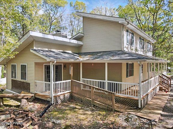 Well maintained 3 BR 2 BA country contemporary located in quiet cul de sac in Hemlock Farms, within the Wallenpaupack School District. Originally built in 1972 AND Totally renovated in 2003, this home features include a modern kitchen with granite countertops, sunrooms perfect for dining or family gatherings, woodburning fireplace, propane furnace and open-concept living. Enjoy outdoor living with a large deck ideal for BBQ parties or enjoy your favorite beverage on the covered front porch for relaxing. Community amenites include lakes, indoor and outdoor pools, tennis-pickleball courts, fitness center and more set in a beautiful natural setting. Don't miss the opportunity to see this unique style and layout. Schedule your showing today!