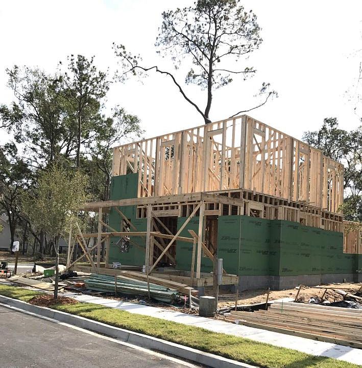 Lowcountry architecture. with upper + lower porches in front and screened side + back porch facing the pool