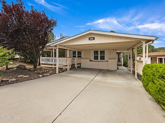 Seller is offering seller financing with a 5.5% interest rate. Light and Bright doublewide with spacious floorplan. 55+ age community in Central Prescott close to shopping and restaurants. New Windows Throughout! Newly Fenced Side Yard. Newer HVAC system. Copper /Pex Plumbing. Big Kitchen with lots of storage. Large Walk In pantry in corner. There is a 8 X 11 bonus room off the master bedroom. Clubhouse offers indoor pool/spa, trash pickup, gym, billards and RV parking may be available for a small fee. Appliances stay. Come see it before it's gone!