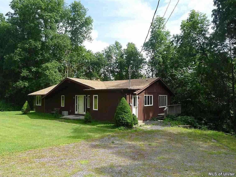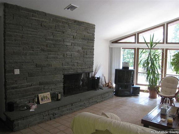 This Contemporary 3 bedroom ranch is quietly tucked away amidst the tall trees of this 3-acre country setting. Featuring comfortable living space all on one floor, the focal point of the open living/dining room with wood beamed vaulted ceiling is the wonderful floor-to-ceiling stone fireplace. Get warm & cozy by the fireplace while appreciating views of the great outdoors through a wall of windows or step through the sliders onto a private wrap-around deck to relax and watch Mother Nature's grand show.