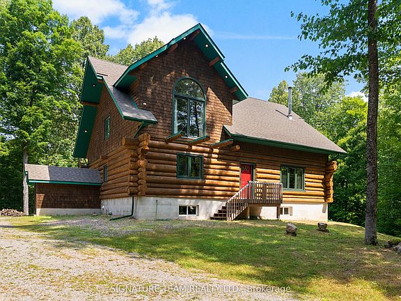Set amidst 14.95 acres of mixed hardwood forest minutes from Pembroke, this extraordinary custom built log home offers a rare blend of artisanal craftsmanship and refined rural living. Designed with timeless attention to detail, this home is a true testament to natural beauty and enduring quality. The heart of the home is an expansive open-concept kitchen and dining area, thoughtfully laid out. Adjacent, the great room is anchored by a floor-to-ceiling stone fireplace and framed by dramatic 25-foot pine tongue-and-groove cathedral ceilings, creating a sense of warmth and scale rarely found. You'll find 2-beds, a 4-piece bath and screened in porch off the kitchen. Maple hardwood floors flow seamlessly throughout the main level, while handcrafted log railings and a custom staircase add authenticity and rustic elegance. The 2nd level opens to a spacious loft overlooking the great room below. Additionally, the large primary features 11-foot ceilings, bamboo flooring, a walk-in closet, and ensuite bathroom. Full basement is partially finished with its own entrance, a large rec room, a bedroom, 3-piece bath and a wood elevator. Outdoor living is equally impressive, with a large deck complete with built-in bench seating and a screened 3-season porch that invites you to relax. The detached 30 x 40 garage offers versatility, boasting 14-foot ceilings, 200 amp service, a 12 x 12 room with A/C, a bar area, insulated with radiant in-floor heat, and hot/cold water. In addition to the garage, there is also a gazebo area, lean-to, outbuilding for storage and a 3-season bunkie with a cookstove and kitchenette. Modern updates enhance the functionality and peace of mind, including a new LG stove & dishwasher, water treatment system, pressure tank, and roof was replaced in 2023. For those seeking a lifestyle in harmony with nature and elegance, this is a rare opportunity to experience the best of country living in a setting of charm, comfort, and craftsmanship. Min 24 hr irrevocable.