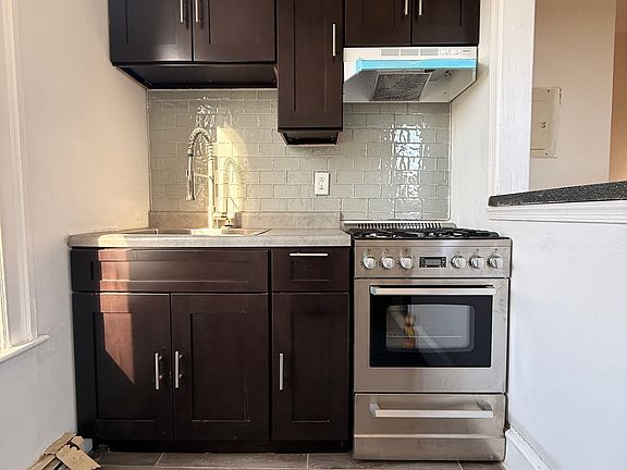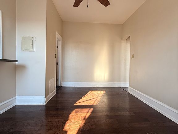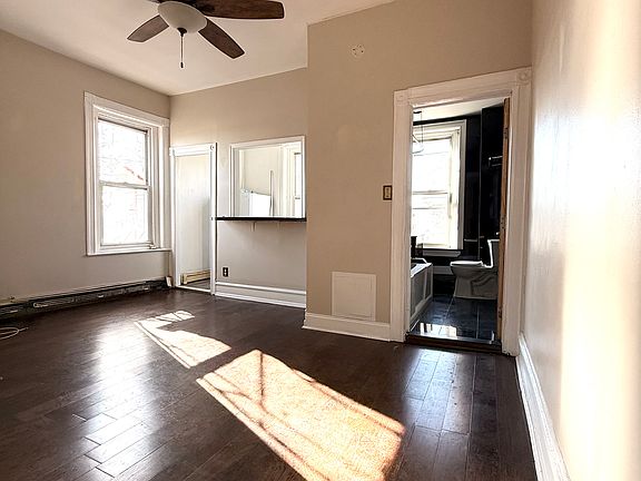 Bright and spacious 2-bedroom apartment in the heart of Overbrook! Enjoy large rooms, beautiful hardwood floors, tall ceilings, and great natural light throughout. The updated kitchen features dark shaker cabinets, tile backsplash, stainless steel stove, and newer flooring. The modern bathroom stands out with its sleek black floor-to-ceiling tile, deep soaking tub, vessel sink, and a large window that brings in natural light giving the space a clean, contemporary feel. A sun-filled living area with bay windows and ceiling fans adds to the comfort. Located in a classic stone-and-brick twin on a quiet block, close to transit, City Ave, St. Joe's, parks, and everyday conveniences.