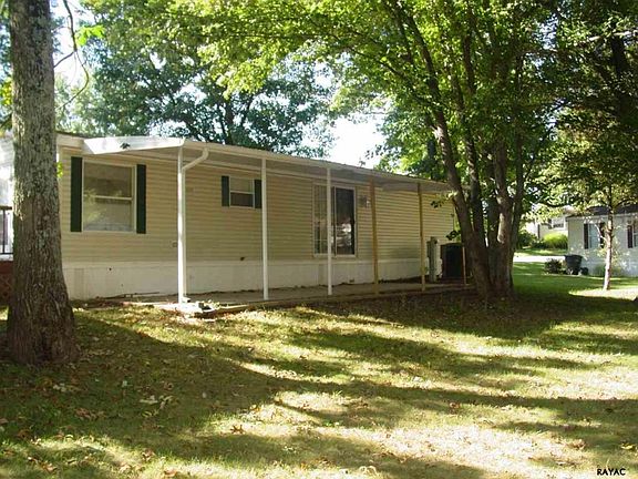 Well-maintained Double-Wide Mobile Home featuring an open floor plan with vaulted ceilings, 3 Bedrooms & 2 Full Baths. Spacious Kitchen features oak cabinets & lots of storage space. Master Suite has a large closet & full Bath. Covered Patio. Storage Shed. Paved Driveway. Mature trees. Located in an established mobile home park in a country setting within easy access to I-83. Lot rent is $240/month and includes water, sewer & trash removal.