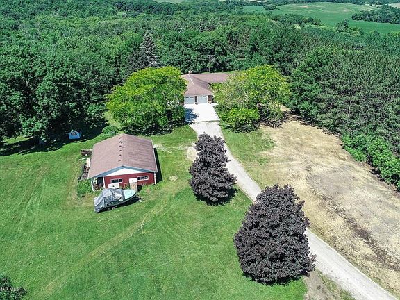 One owner brick home located on 39 acres with panoramic views of thousands of trees including large grove of walnut trees. Some updates include granite countertops, wood floors and new septic system. There are 2 attached garage stalls with an additional 3 car detached garage and 32x64 pole barn with concrete floor. This is your chance to own a country property.