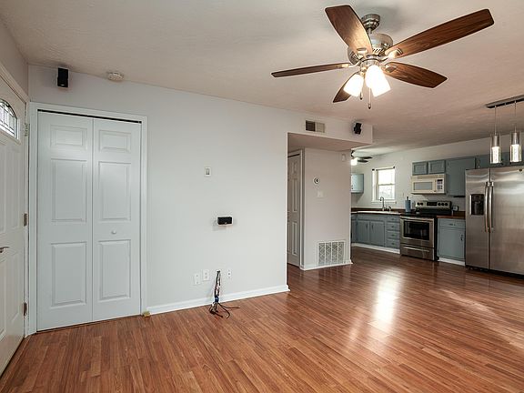 All brick ranch style home situated on a quiet street in Highview. The open floorplan living room and kitchen introduce you to the wood floors featured throughout the home. The kitchen has a large pantry for all your storage needs. This home has 3 bedrooms. Bathroom was updated in 2017 and features beadboard detail, ceramic tile floor, and tile surround in tub/shower. The back yard boasts a large patio with plenty of room for all your outdoor entertainment needs. The 2 1/2 car oversized garage will be a dream come true for storage, tinkering, crafting, woodworking, or even a mechanic. you name it, there is space of it!!! New Roof 2016. New A/C 2016. New Furnace 2020. Appliances will remain with home.