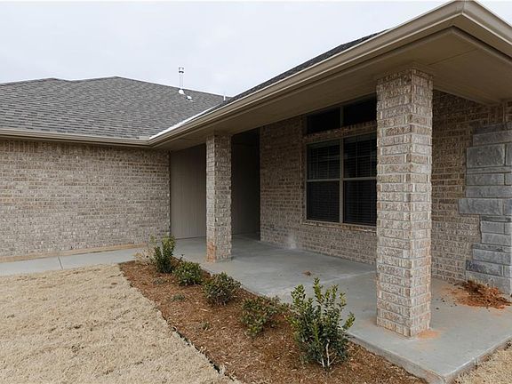 HOME OFFICE?? This home has one adjoining large Bedroom. built-in desk and wood shelves. Or convert one of the bedrooms at end of hall! Spacious living w/fireplace. Largest kitchen w/most counter space/cabinets of any of this builders homes. Breakfast bar, dining area opens to patio .Granite counters with tumbled marble back splash ,tall ceiling with recessed lights . Stainless steel appliances & sink. Solid wood cabinets built on site by Oklahoma's oldest building firm 1907 . Builder pays ($4500) of buyers closing costs. provides sod, fence, 2 " faux wood blinds. Builders 1 year warranty plus 10 yr. structural warranty. Corner lot! Easy in and out of neighborhood. Ready to move in.