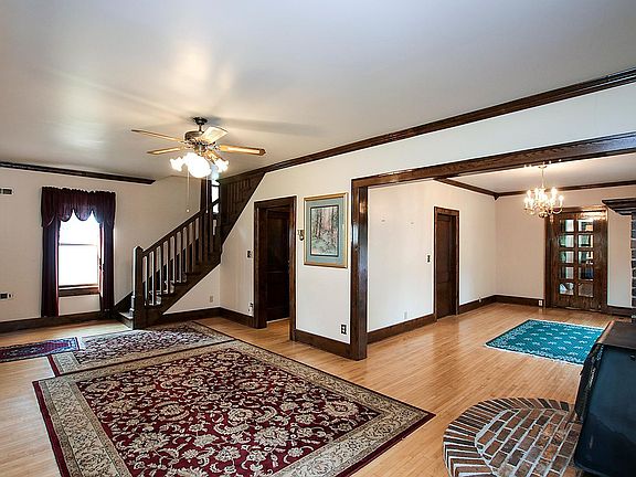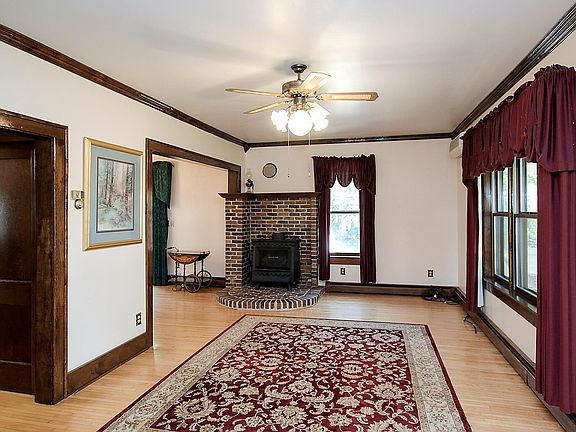 Beautiful 4 bed, 2 bath character home on 6.3 acres. Kitchen features oak cabinets, recessed lighting, center island and a breakfast area. Oak floors, formal dining room with doors to a spacious wood deck. 4 season porch with oak floors and a beadboard ceiling. Main floor master features 2 closets, patio doors to the deck and a 3/4 master bath. Upper level has 3 bedrooms all with walk-in closets and a full bath. Main floor laundry, steel siding and a metal roof. Quonset shed. Located close to approx. 200 acres of state hunting land. America's Preferred Home Warranty included.