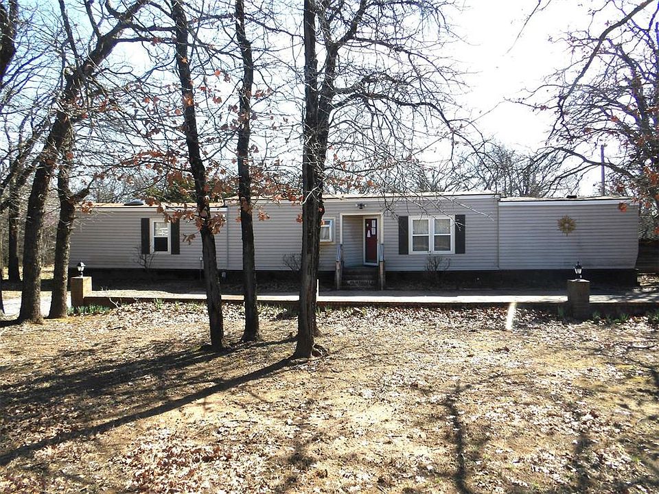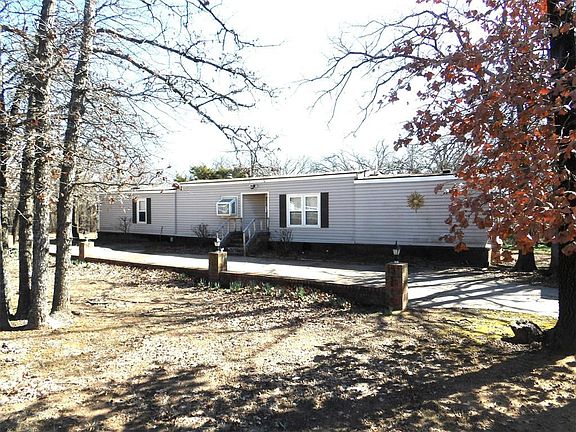 Wow, what a buy!! 2-bedroom 2 bathroom plus large wooden deck on back of the home, circle driveway, carport and small storage building on your own 1.47-acre oasis!! Close to I-35!! One bedroom and bath on one side of the home and 1 bedroom 1 bath on the other side of home. Lots of trees!!