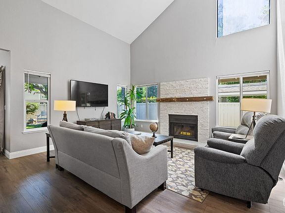Don't miss this adorable and spacious condo located in The Shores community! Discover comfortable living in this spacious one-bedroom, one-bathroom condo, boasting 908 square feet of well-designed space. Step inside to find a bright, open layout, this home features a well-equipped kitchen with a pantry, nice dining space, fireplace, dedicated laundry area, and a linen closet for added storage. Relax in your generous updated backyard with beautiful artificial turf. You can also enjoy the serene community amenities, including a pool, clubhouse, and a gorgeous lake with water features. This condo also includes a detached one-car garage with extra storage space, ensuring you have ample room. Don't miss out on the chance to call this lovely condo your new home.