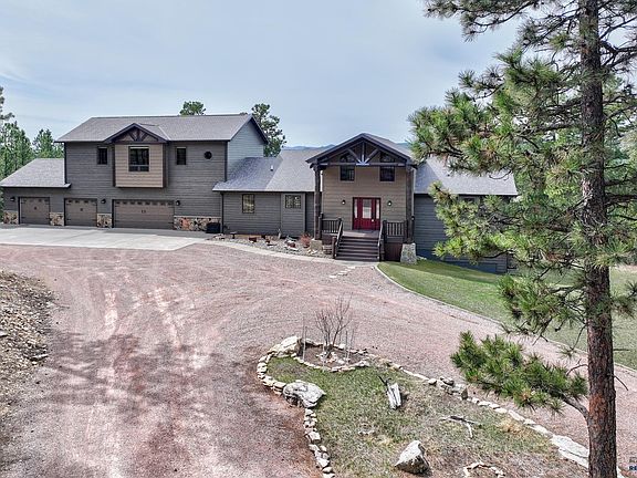 Million Dollar Views With No Covenants! Within 20 minutes northwest of Rapid City this beautiful home sits on just over 15 acres. With 4000+sf of livable space and no covenants this home is a rare find! The two story living room features vaulted ceilings and a floor to ceiling stone fireplace, a loft space , and timber accents. The main floor master ensuite has soaker tub, shower, double sinks, and a walk in closet. The kitchen allows for amazing views and room for large gatherings. Access the expansive covered deck and stunning views right from the dining room!. Upstairs is the perfect place to entertain. Vaulted ceilings, a second gas fireplace, and a wet bar with room for a large sectional and even pool/game tables. The lower level walkout has 3 additional bedrooms, a full bath, and a large finished bonus area with endless possibilities. (Exercise room, crafts, workshop, etc.) Contact your agent and schedule your showing today. This home is a true gem!