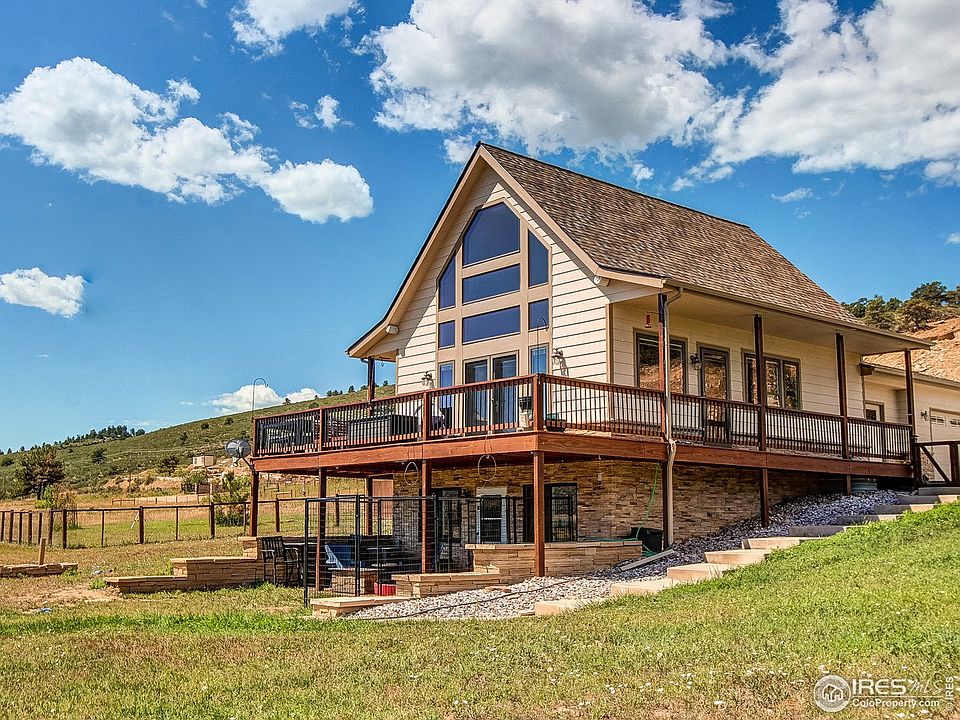 Smile, You're home! Fantastic, affordable acreage home in West Loveland. No HOA, horse property, complete with pasture, corrals, loafing sheds, 30 X 30 shop, garden areas and chicken coops. The property has 2 water meters, 2 electrical service lines and 2 septic systems. The guest house is already built - come build your dream house! With 360 degree views of the foothills and Horsetooth mountain, this property is hard to beat. Seller has horse barn blueprints available as well. Inside you'll appreciate beautiful hardwood floors throughout the main and upper levels + stunning kitchen cabinetry, huge pantry, Laundry/mud room area and oversized attached garage. The walkout basement suite offer added living space with stained concrete floors and 3/4 bath. There are ditch rights conveyed with the property as well. This home is a must see!
