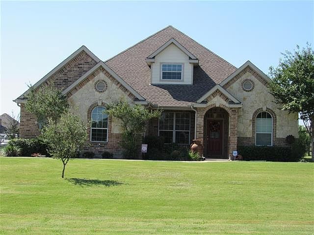 Beautiful brick & stone home on over 1 acre in Lakeview Ranch! 4 bedroom, 3.5 bath, recessed lighting, 10 ft ceilings & crown moulding. Brick WBFP. Kitchen has granite counters, gas range, bkfst bar, SS appl. and ample cabinet space! Master has jetted garden tub, sep shower, dual sinks & WIC! Upstairs gameroom! Huge backyard with big covered flagstone patio