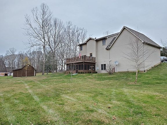 Looking for your home in the country? This is a 4 BR, 2 Full Bath, 2 Half Bath home situated on approximately 3 acres of open field and woods. First level master suite, full finished walkout basement with a new 13x22 screened porch. The living room has a gas insert fireplace, oak trim throughout with crown molding and 6 panel doors. New 13x22 deck off of main level with TREX decking and custom railings that overlook the massive backyard, shed, and garden area. Garden is fenced and irrigated. The backyard also includes a 16x16 barn. The home also includes a finished workshop above the garage with a large walk in storage area. The two car garage has finished epoxy flooring.
