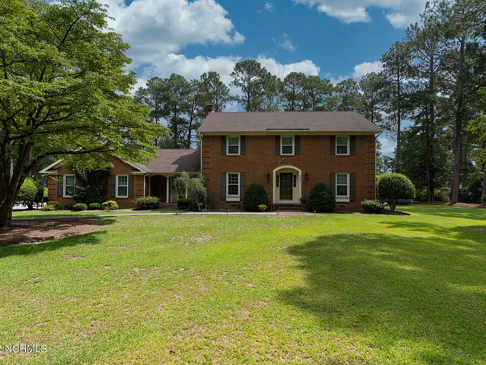 This charming home sits on over 1 acre on the 8th green and offers a beautiful view of the course. This 4 bedroom 2.5 bath home offers fresh paint throughout, newly professional cleaned carpets, new garage floor, an office (that could be a 5th bedroom), and a Carolina room. It is an easy drive to Southern Pines and only 2 hours from the beach! The 16x32 above ground pool conveys!
