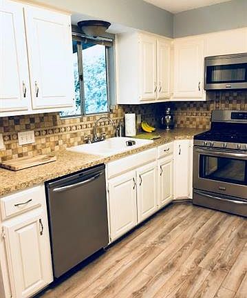 Great Location and great home. 3/2 home has been updated a couple years ago with custom cabinets, recessed lighting, upgraded counter tops, updated light fixtures, tile back splash, french doors, recently installed carpet, custom closet shelving. Good sized backyard with large covered patio.