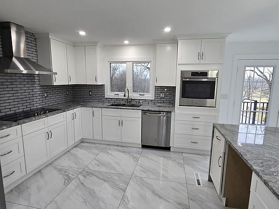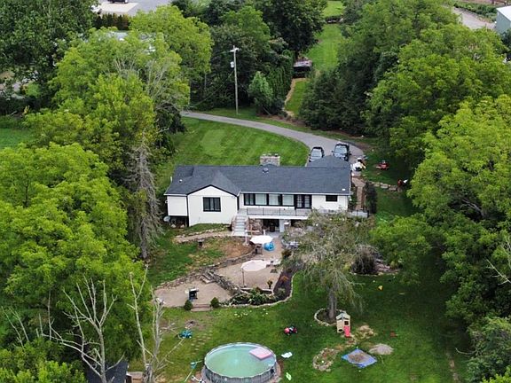Nestled on the edge of tranquility, this 4-bedroom, plus versatile 5th bedroom or office, expanded ranch set on nearly 2 acres. The open living and dining area, featuring a cozy wood-burning fireplace, bathes in natural light pouring through expansive windows. Escape to the master bedroom with a private exit to the balcony, a peaceful spot to unwind and take in nature's beauty. Make your way downstairs to the ground level with ample space and an extra kitchen that makes it perfect for gathering. The living spaces seamlessly open onto a charming patio with a welcoming fire pit, surrounded by nature's embrace. Beyond its serene charm, this home offers versatility for the way it is setup. Welcome to a home where privacy, comfort, and natural beauty converge, creating a harmonious retreat from the outside world.