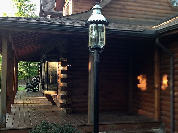 Custom-built log home completed in 2006 on 7.75 wooded acres along the Vermilion river. If your family enjoys the outdoors in a beautiful country setting this is the house for you! The focal point of the home's main floor is a 2-story, double-sided stone fireplace open to both the living room and kitchen. A master bedroom, walk-in closet, master bath, and laundry are also on the main floor. Two bedrooms, full bath, and loft with 8-ft window overlooking the property complete the upstairs. There is a full, partially finished basement and 3-car heated garage with hot/cold running water. Extras include a 24'x24' barn with loft, hot/cold running water, 220v subpanel, and gas heat; 12'x20' out-building for equipment storage; pasture fence; 35' lighted flag pole; stamped concrete patio with stone bench, fire pit, and electric accent lights; 3 vintage lampposts; walking trails. School district is Firelands.