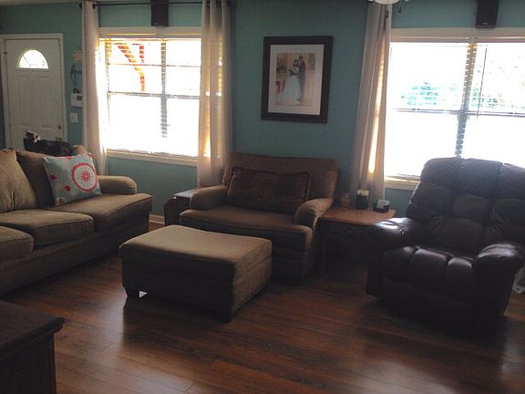 Great 3 bedroom, 1/5 bathroom home. Large great room with fireplace and new laminate wood flooring, seperate dining room, with new laminate wood floor. Nice Kitchen with tile floor, bathrooms have been updated with new ceramic. Fresh paint. Back yard is a must see! Huge fenced corner lot with beautiful retaining wall and separate fenced area for pets. Covered porch and screened porch. 12x16 outside storage building.