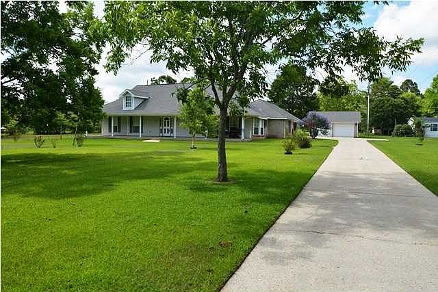 Country living at it's best. Beautiful 4 bedroom, 3 bath on nearly 2 acres that are beautifully landscaped with blueberry bushes, pear, kumquat trees and pecan trees. Sip coffee on the large front porch or the back screened patio. There's a 2 car attached side entry garage with a large storage room inside which is where central vac is located. Also a detached matching brick 2 car garage that is sheetrock and a great space. In addition there is a large 20 x 30 workshop with garage door access and a lean-two, perfect for a workshop. Inside the home you will find turtle back ceilings, beautiful brick floors, wood burning fireplace and a kitchen with tons of counter space, cabinets; spacious pantry. The bedrooms are spacious and 2 of them feature a Jack and Jill bathroom with their own vanity areas. The master bedroom has it's own entry to the screened in back porch, perfect for BBQ's and entertaining. Call your agent for your personal showing today.