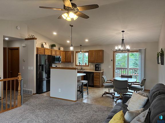 Split-level walkout home offers 3 bedrooms, 2 full bathrooms, heated 2-car garage plus a large heated storage shed/shop, and 1,600 finished square feet. The main level has an open floor plan with large picture window in the living room, vaulted ceiling, and kitchen/dining area with a breakfast bar and sliding door to the deck. The spacious primary bedroom has a large walk-in closet and pass-through door to the bath. Downstairs you will find a family room with gas fireplace, built-ins, and door to the patio. Two additional large bedrooms, full bath, and laundry. Backyard is fully fenced, a perfect place for kids and pets to play. Located on the west side of Sioux Falls on a quiet street and a short drive to schools, shopping, and dining.