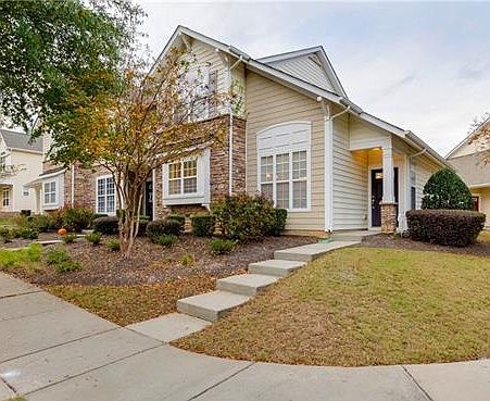 Welcome home to Cureton! This 3 bedroom, 2.5 bath, open floor plan, end unit overlooks the community park and wooded area from the den and patio. One car garage located behind unit. Downstairs master, large den with fireplace and hardwood floors, dining area off kitchen with solid surface counters and a big window. Laundry room off kitchen with half bath. Upstairs are 2 more bedrooms and a full bath which have rarely been used. Lovely neighborhood with resort-like amenities including pool with slide, clubhouse, fitness center and walking trails. Walk to bar, restaurants, grocery and banks. Close to happening downtown Waxhaw.