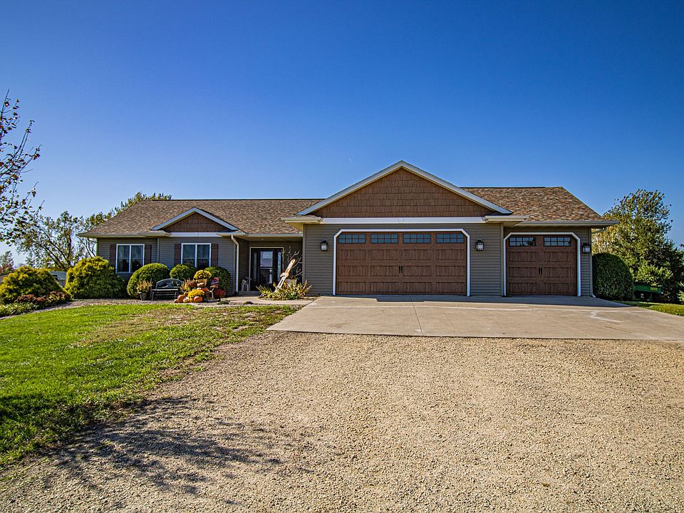 Beautiful acreage in Jones County Iowa close to Hwy 151 and Anamosa. You are going to fall in love with this 5 bedroom, 3.5 baths ranch home with 2,900 sq. ft. finished sitting on an acreage in a very quiet subdivision between Anamosa and Martelle. Immaculately landscaped overlooking 2 ponds. Features 3 stall attached garage, quartz and granite counter tops, huge deck and patio, Hickory cabinetry throughout. Lower level features 2 bedrooms, great room, wet bar, walk out to your gorgeous private back yard space! $389,900 If you would like, there is an additional 2.55 acres with a lodge that could be purchased along with this stunning acreage!