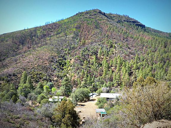 11.48 acres with 2 bedroom 2 bath 1056 sq ft Main House with an enclosed Front Porch for entry and a beautiful covered Patio to enjoy the MountAIn Views. Updated Kitchen looking out to the Family Room and Large Windows to take in all the Mountain Views. Flooring has been updated throughout the house. Master Bath has been updated with new cabinetry and Shower. Freshly painted inside and out of Main House and Guest House. Guest House is in the format like a studio with Private Full bath, Kitchenette and own deck to enjoy the views. Guest House square footage is not counted in full square footage, Buyer is to verify its square footage. Horse Stall, Tack Room, Chicken Coop, and 30x40 Workshop also on the property. Big Bug Creek runs through the lower part of the property.