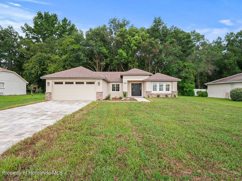 This Beautiful NEW CONSTRUCTION home offers the perfect blend of modern luxury and serene living. Nestled on a quiet, private street within the Vibrant 55+ sought-after community of Wesleyan Village in Brooksville, Florida, this 3-bedroom, 2-bathroom, 2-car garage home spans 1,486 square feet of thoughtfully designed living space. The elegant Brick paver driveway and walkway will catch your eye all the way from the curb * Featuring spacious & Open Floor Plan * Enjoy bright, airy living, neutral palette area perfect for entertaining and everyday living. Gorgeous Kitchen featuring top-of-the-line stainless steel appliances, granite countertops, custom wood cabinetry with soft close - dove-tail drawers and cabinets Luxurious Primary Suite: A private oasis with 2 walk-in closets and an en-suite bathroom complete with a dual-sink granite vanity and a beautifully designed tiled walk-in shower. Modern Crisp Finishes: Vaulted ceilings, luxury vinyl flooring, and modern fixtures throughout. Outdoor Living has a blank canvas to paint your own dream backyard ideal for enjoying Florida's gorgeous weather. Situated in Wesleyan Village, you have access to gym facilities, a heated indoor pool, pickleball courts, dog park, a golf driving range, and a magnificent nature trail perfect for a hike through the woods. If you like things more indoor, Community center complete with pool tables, ping pong tables, a tv viewing area, game tables, and even a coffee shop. In addition, there are numerous classes weekly ranging from craft classes to line dancing. The wonderful dining room in the Nicholson Center serves meals daily during peak season and sponsors special meal nights with entertainment. All within being just minutes from Historic Downtown Brooksville and adorning quaint eateries, shops, nature and history - with easy access to Tampa and Orlando. Monthly Assessment includes water, sewage, trash pickup and the use of the facilities. This home offers not just a place to live, but a lifestyle to be savored. Don't let this home pass you by - Call today!