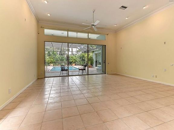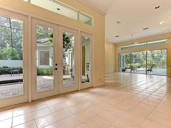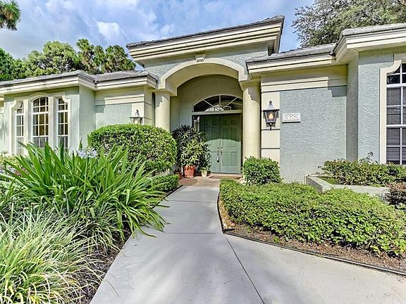 This luxury, custom-built home has been recently updated. The pool has been refinished. Freshly painted interior. New roof in 2014. New granite vanity with 2 sinks in master bath. New lightning. More upgrades include a 75 gallon instant hot water heater (July 2011) and a Hellenbrand whole house water filtration system. * This home is secluded and situated on one of the largest lots in University Park Country Club. Green space to the left, a cul-de-sac in front and the obscured 2nd fairway in the back provide the ultimate in privacy. Beautiful 4 bedroom, 3 bath home (Or 3 bedroom and office) has a formal living room, formal dining room, and family room. The living areas are bright and spacious with 13 foot ceilings. Owners suite is 16'' by 20'' with crown molding and 2 walk-in closets. The owner bath has a walk-in shower, soaking tub, dual sinks (granite) and access to the pool. This home has been meticulously maintained. Palm, magnolia, golden raintree and oak trees. Azaleas, bougainvillea and gardenia are plentiful. Amenities available in this gated community include an award-winning 27 hole golf course, tennis courts, croquet, fitness center, and The Park Grille & Cafe. University Park is minutes from the new UTC mall, dining, museums, Van Wezel Performing Arts Center, downtown Sarasota and world-class beaches.