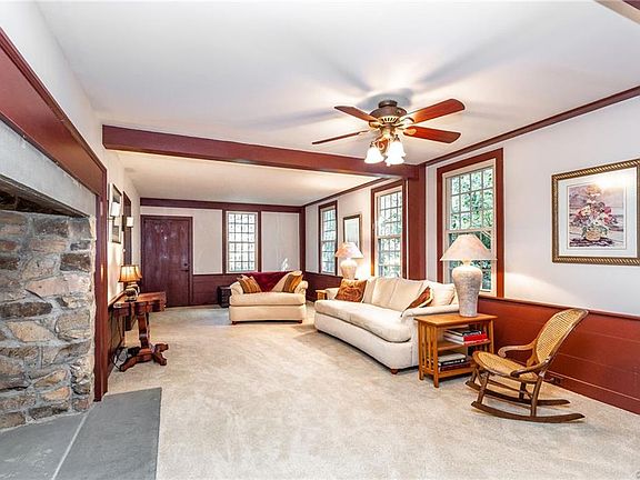 DON'T MISS THIS!! Mirrored after the historic "Glebe House" in CT. This house is truly a one of a kind find. The magnificent details and the quality of construction are showcased throughout this property. This home boasts 4 floors of finished living space at over 5,500 s/f all sitting on a gorgeous 2.65 acre lot at the end of a cul de sac! The 2 story Carriage House has a huge great room with fireplace, large loft area and 3- car garage. The main level of the home has a large living room with massive 6' fireplace, formal dining room, office, kitchen, and morning room. Level 2 has 2 bedrooms 2 full baths and features the beautiful master suite. The 3rd level features another full bath and bedrms 3 & 4. The basement has tons of storage and a huge den/rec rm, half bath, and laundry room with a separate exterior entrance. All this with a Brand NEW Cedar Shake roof and freshly painted interior. You will fall in love as you walk through this amazingly designed home with 6 Stone Fireplaces, Heart pine flooring, solid wood doors, wainscotting, and the list goes on and on. Don't forget about the Virtual Tour. Schedule your showing TODAY!!