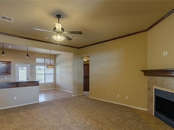 4th bedroom is office or study. New open concept for family. Living with Fireplace, electric and cable above mantle. Granite counters in kitchen with tumbled marble back splash. Tall ceiling with recessed lighting. stainless steel appliances & sink. Solid wood cabinets built on site by Oklahoma's oldest building company since 1907. 1 Yr Builders Warranty plus 10 yr structural warranty.