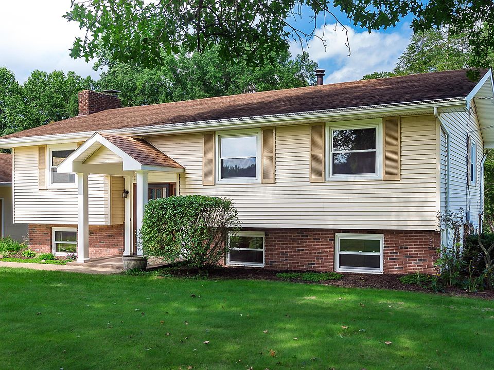 Over an acre plus with loads of updates. New kitchen cabinets, counter tops, dishwasher and gas stove. New carpet throughout. New bathroom vanities. Update electrical and new insulation. Whole home has been repainted with neutral paint color. New sump pump. This home has finished workout room on back side of garage. Drop ceiling added, insulation, can lights, heated and cooled and updated electrical in garage as well.