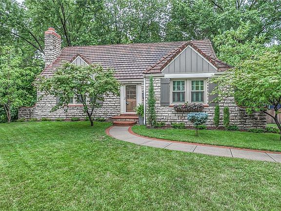 Fabulous Stone Cottage in Historic-sought after Leawood! Huge private 2nd Flr Master Suite w/sitting room & beautiful ensuite bath w/Lg shower & soaker tub. Galley Kitchen w/granite tops+tumbled tile backsplash,Gas stove & SS Appls. Charming Breakfast nook & Formal Dining. 2 Beds on 1st w/New Hall bath. Killer Outdoor living w/ Covered spacious deck that overlooks a lush yard+lots of plantings. Beautiful HDWD Flrs. Plantation shutters. Tile Roof w/good life left. New sewer line. Extra space in the finished Rec Rm.