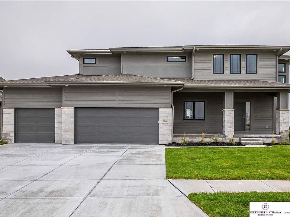 Contract pending, on market for back up offers only - Custom builder Brookstone Homes completed a modern prairie walkout 2 story that sits on a corner lot in the Bennington School district and offers skyline views! Natural light pours into the main floor open concept living and dining areas perfect for entertaining. Custom white paneling lines the linear fireplace, making the living room one of a kind! If you are into hosting get togethers the hostess counter in the dining room boasts a counter for multiple crockpots and houses a beverage fridge! Working from home? This oversized main floor office allows for a set up your co-workers will be envious on Zoom! Upstairs hosts 4 large bedrooms and 2 baths. The main bath has quartz countertops and double sinks with a separate room for the tub and toilet. In the master bath you can soak away the day in the tub or enjoy the tiled shower after a run around Lake Flanagan. Views of hot air balloons from the porch end the evening nicely too!