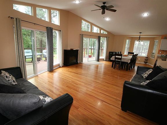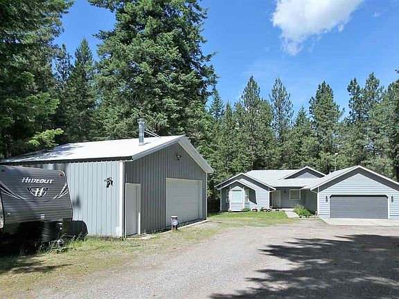 Gorgeous Park Like setting! This beautiful daylight Rancher is situated on 5 nicely treed acres within 10 minutes of the Spokane Valley or North Spokane. Offering 3Bd, 3Bth, 2 huge family rooms, a wrap around deck overlooking the amazing natural setting. Large Master suite w/walk-in closet double sinks & jetted tub. Spacious light and bright kitchen. There's also a two car garage along with a detached 24X30 shop. Gas heat + a wood burning stove downstairs. Come see this close-in private paradise.
