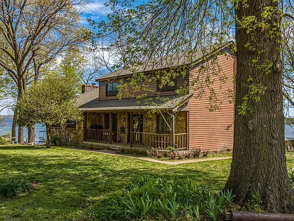 Inside the house you will find 2 large living areas, 2 fireplaces, a wet bar and amazing views! 3 bedrooms with a 4th currently used as a bedroom but could be an office or formal sitting room. It has a formal dining room and a mudroom/laundry with a bath and shower attached for quick breaks from the lake.