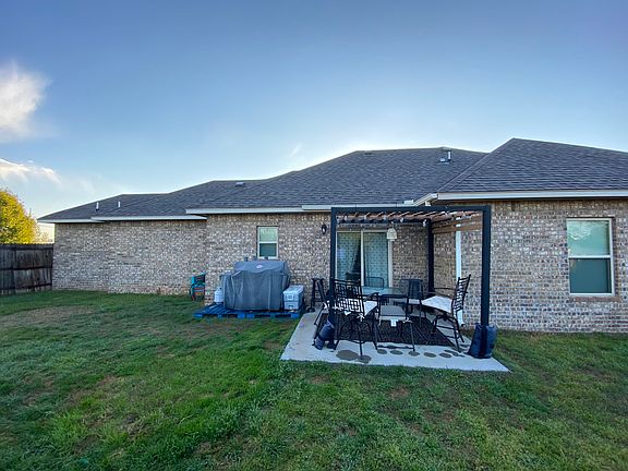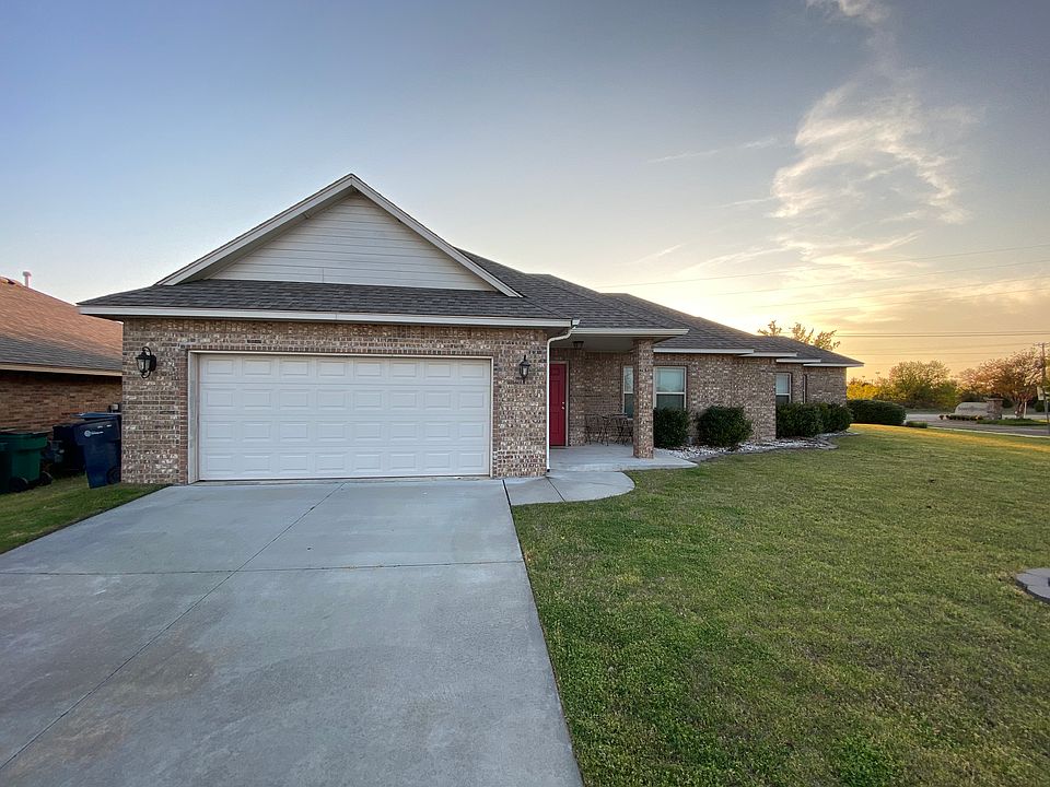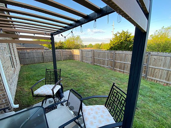 Fantastic home located close to Tinker AFB. you will love the large corner homesite this home sits on and the private backyard with outdoor pergola. This home features an open concept floorplan with large living open to the dining room and Kitchen. The Kitchen features granite countertops, gas stove and a large island. Master Suite is situated away from the guest rooms and includes two closets and a large on suite bathroom with dual vanities, shower and whirlpool tub. Guest Bedrooms are both ample in size and share a hall bathroom. Large Laundry room as well. The backyard is private with no neighbor behind, a perfect place to relax after a long day.