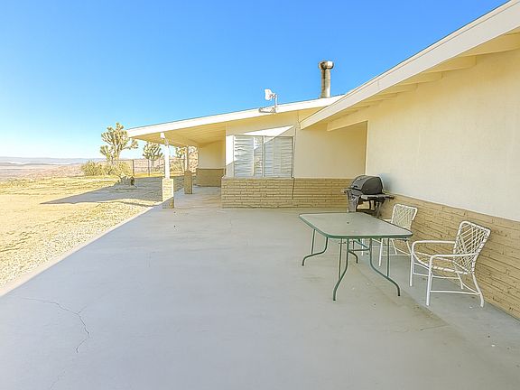 Discover desert living at its best at 8001 Wesley Road in Joshua Tree. Set on 2.6 private acres, this stylish single-level home offers 3 bedrooms, 2 baths, and a bright, open layout filled with natural light. Energy-efficient solar power, central air, and wood/pellet heat provide year-round comfort. Step outside to your own desert retreat a spacious yard perfect for relaxing, entertaining, or stargazing beneath Joshua Tree's famous night skies. Cool off in the above-ground pool, enjoy BBQs on warm afternoons, or unwind with panoramic views of the surrounding landscape. A detached two-car garage adds convenience and storage, while the peaceful location keeps you close to Joshua Tree National Park, local shops, and hiking trails.
