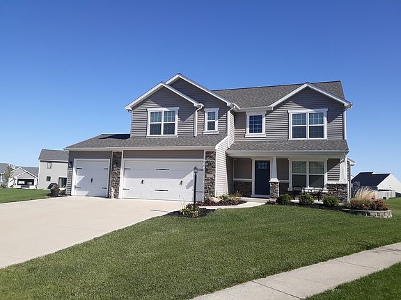 This home offers a spacious, open layout and is fantastically located in a beautifully established neighborhood that features walking trails, picturesque lakes, and a community pool! **SPECIAL FEATURES: *Built in 2014 with thoughtful upgrades and meticulously maintained *Excellent curb appeal with extended front porch, craftsman style columns, stone detailing, and mature landscaping *Full, unfinished daylight basement *Three car garage *Large premium lot that backs up to neighborhood green space and walking trail *12'x14' back patio *Gas fireplace *All appliances included: Samsung washer & dryer, new 2012; Samsung stainless steel kitchen appliances, new 2014 *All window treatments included *Five Star Plus Home Energy Rating *10-year Structural Warranty *Waterproofing membrane around basement with 10 year transferable warranty *Water turbine emergency back-up sump pump **LAYOUT: *1st Floor: Two-story foyer, Dining room, Family room, Open kitchen with walk-in pantry, breakfast bar and eat-in area, Laundry room, Half bath *2nd Floor: Master bedroom with ensuite featuring double vanity and huge walk-in closet, Three additional generously sized bedrooms, Full hall bath *Basement: Unfinished rec room and storage **AMENITIES: HOA is $275/year and provides access to a master-planned community covering over 300 acres that boast miles of scenic walking and bike paths that weave throughout the community, around lakes, and over quaint wooden bridges. There is an additional option to join the neighborhood pool. **SHOWING INSTRUCTIONS: Buyer's agents welcome; call or text (260) 209-4877 to schedule your showing!